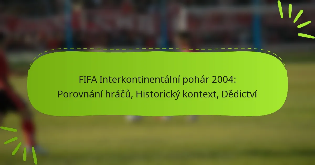FIFA Interkontinentální pohár 2004 byl významnou událostí, která spojila elitní kluby Evropy a Jižní Ameriky, zdůrazňující bohatý talent a soutěživou povahu mezinárodního klubového fotbalu. Tento turnaj nejenže představil pozoruhodné individuální výkony, ale také znamenal zlomový okamžik v evoluci mezinárodních klubových soutěží, ovlivňující budoucí struktury a strategie ve sportu.